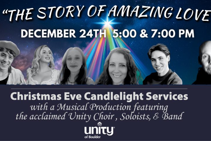Unity’s Christmas Eve Candlelight Services ‘The Story of Amazing Love’ , A Holiday Season Musical Production featuring the acclaimed Unity Choir, Soloists & Band December 24th at 5pm & 7pm MST Our 7pm MST Candlelight Service will be livestreamed. FREE TICKETS AVAILABLE HERE Join us on Christmas Eve at 5pm or 7pm MST for The Story of Amazing Love—an unforgettable, heartwarming holiday musical experience! __________________________________________We often think of the Christmas story as something that happened long ago, in a faraway…