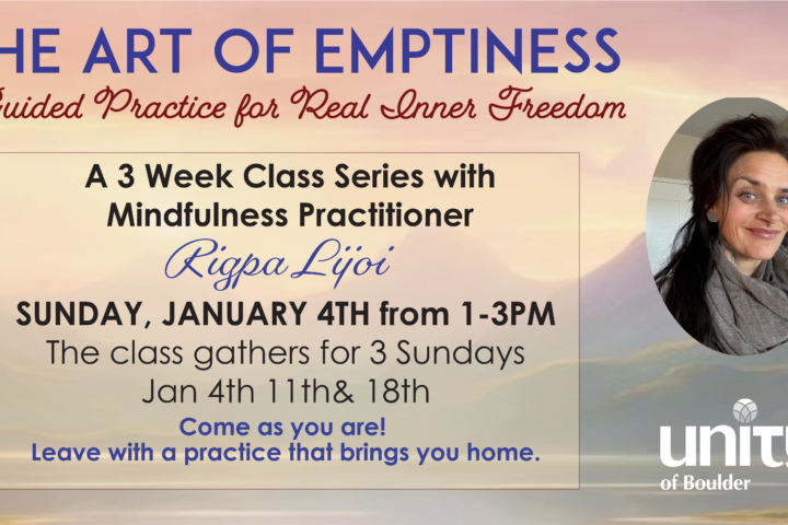 New Year’s Eve Meditation Dec 31st from 11:15pm to Jan 1st at 12:15am with Jack & Norma Groverland Over the past years people claim that Unity of Boulder‘s New Year’s Eve Meditation Service was the most influential, personal experience on their spiritual journey. Enter into 2026 with a heart-centered, peaceful connection to Spirit and yourself. You’re invited to join us on New Year’s Eve at 11:15pm for this very special Meditation Service, free to the public and a unique way…