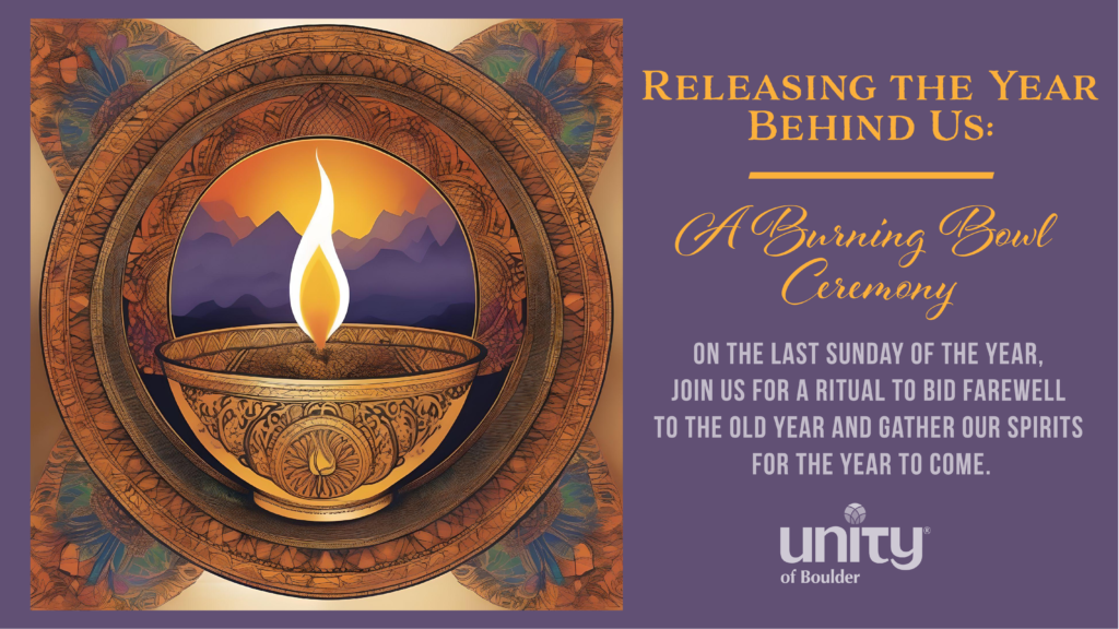 Renew your commitment to yourself at our annual ‘Burning Bowl Ceremony’ Sunday, Dec 28th at 11:30AM MST, featuring beautiful music performed by mother-daughter duet Norma and Syntysche.