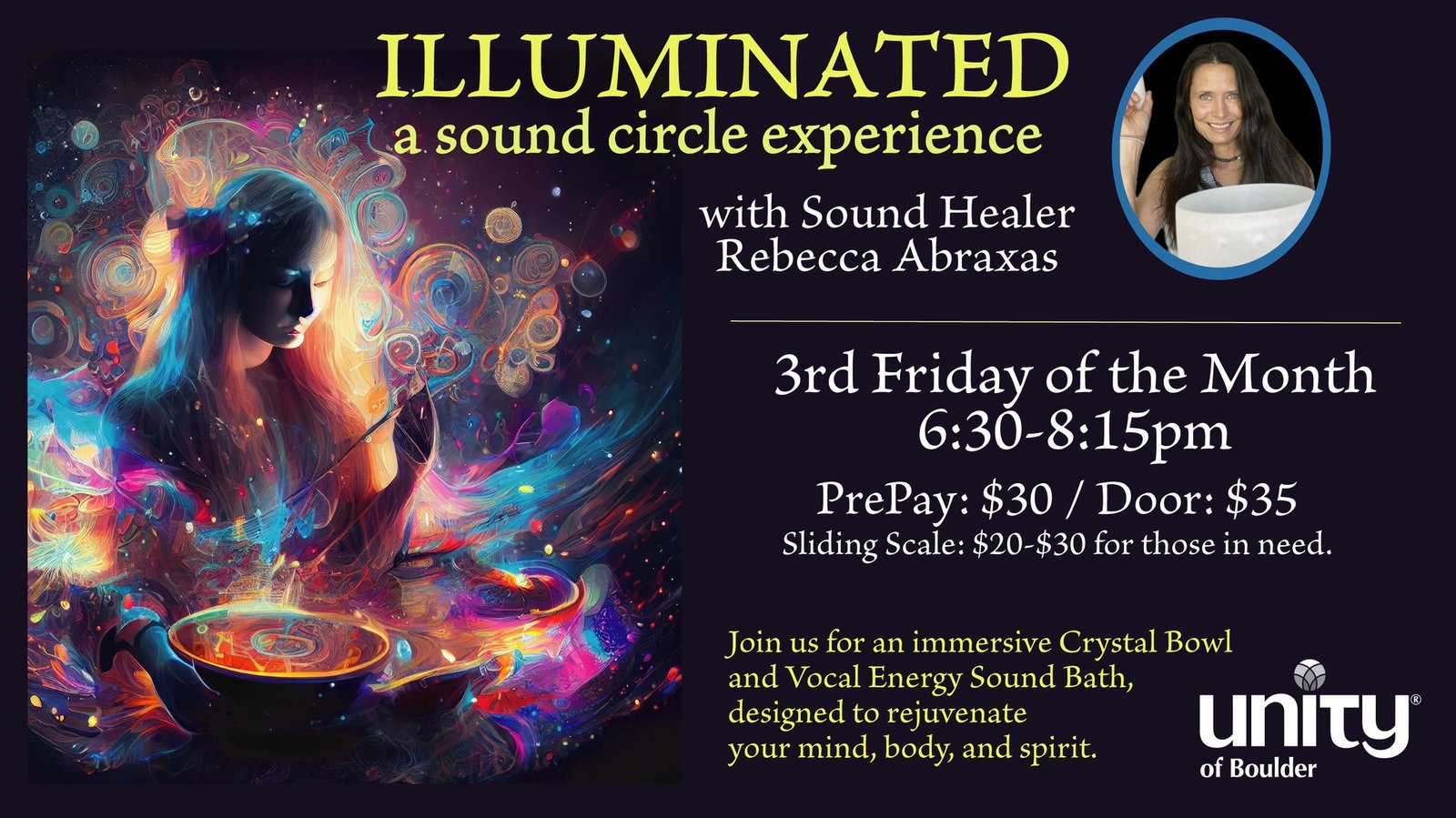 You’re invited to An Illuminated Sound Healing Journey with Sound Healer Rebecca Abraxas.