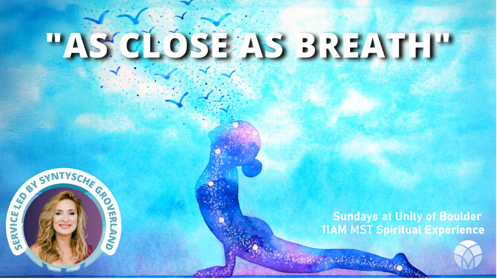 This Sunday, We invite you to join us for “As Close As Breath”. What you hear has a great deal to do with what is already present in your mind. Each person who opens to my voice will hear it according to your own perceptions and preconceptions. That is inevitable.