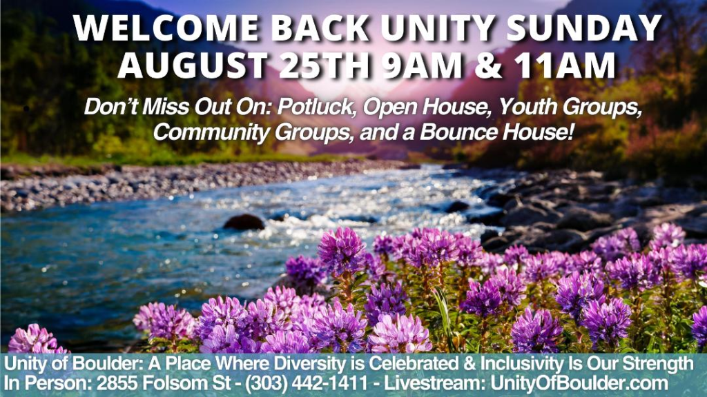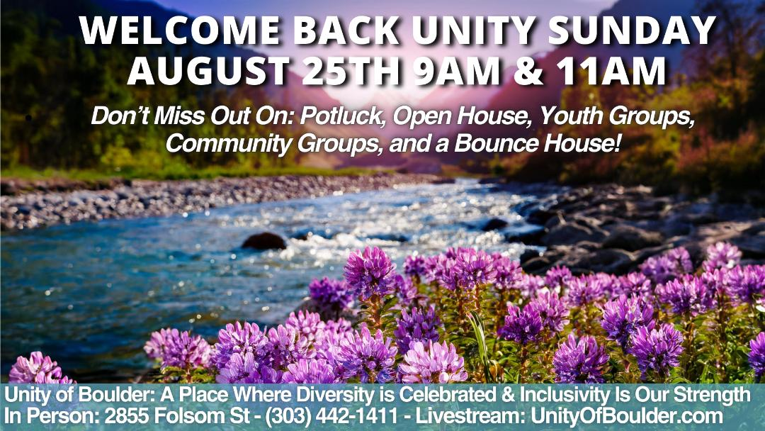 WELCOME TO UNITY SUNDAY is Sunday, August 25th