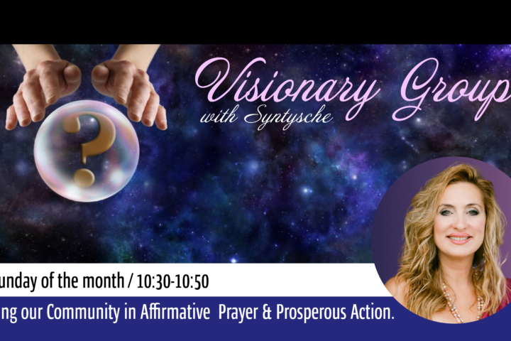 Syntysche’s Visionary Group 4th Sunday of the Month 10:30am-10:50am Meditation Rm. (downstairs) Join us the 4th Sunday of the Month from 10:30–10:50 am as we gather in sacred community for our Prayer & Visioning Circle, in the Meditation Room, led by Syntysche Groverland. Jesus reminded us, “Where two or three are gathered in my name, there I am in the midst of them.” (Matthew 18:20) When we come together in this way, our prayers are magnified and our vision takes root in powerful ways.…