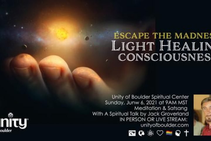 In Eckhart Tolle’s book, ” A New Earth,” he sites the many historic accounts that declare the madness of Mankind. Tolle claims that there is only one way to escape the madness that seems to be increasing in our world. Like many other Life-Masters, Tolle calls us to a higher dimension of awareness, where we enter the transcendent dimension of light-healing consciousness. At Unity of Boulder’s 9AM MST Sunday Service we will contemplate Tolle’s Light-Healing revelations and see how…