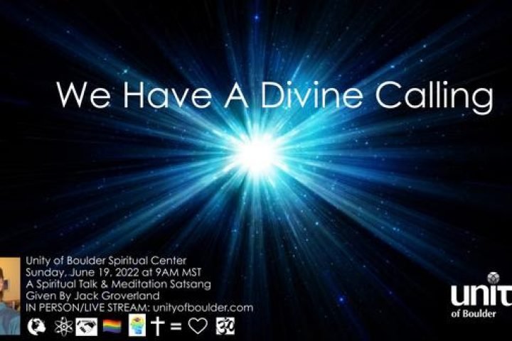 Satsang & Group Meditation9AM MST, Sunday August 8, 2022With a Talk Given by Jack Groverland THIS WEEK’S SPIRITUAL MESSAGE:‘The Second Coming’Jack will reveal the actual Gospel Scriptures which will open your mind to the fact that the Second Coming occurs when Jesus, the miracle-working man in history becomes the Christ in You! Norma will share the beautiful meditative sounds of theTibetan Singing Bowls in a live performance. ABOUT UNITY OF BOULDER:Every Sunday at Unity of Boulder Spiritual Center we strive…