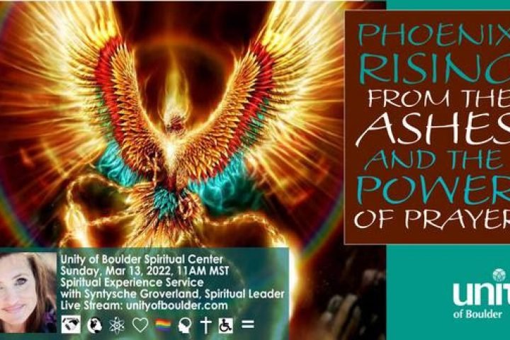 11AM MST, March 13, 2022with a Spiritual Talk Given by Syntysche GroverlandSpecial Musical Guest Performance by Marcy Baruch THIS WEEK: ‘Awakening, Beyond the Senses ~ Talk 4 of 4: Phoenix Rising From the Ashes & The Power of Prayer’ This Talk Series is about accessing, The Akashic Records, Spirit Guides, our soul families–the part of us that never dies and developing intuition and understanding how karma plays a role in our lives, how to access healing and create a path…