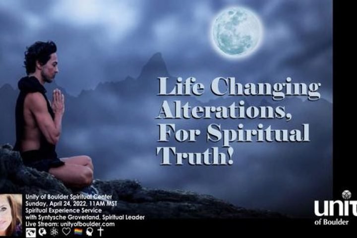 A Spiritual Talk Given By Syntysche Groverland THIS WEEK: ‘Life Changing Alterations for Spiritual Truth’For some of us, our spirituality is focused on certain areas of our lives, and not on other important areas, like at work, or on difficult issues in marriage or with difficult people. This is where our practice could alter our lives for the better for greater peace and joy on this journey. Every Sunday at Unity of Boulder Spiritual Center we strive to bring you…