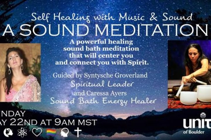 Meditation & Satsang Servicewith a Spiritual Talk Given by Syntysche GroverlandAnd Sound Bath & Crystal Bowl Meditation Performed by Caressa Ayers THIS WEEK: ‘Self Healing with Music & Sound’ In listening to the high-intensity, low-frequency combination of singing bowls, drums, and bells in this sound meditation, you will be emersed into a deep relaxation response, positively affecting mood and sense of well-being. Sound healing has been used for centuries and been utilized in various forms by cultures around the world.…
