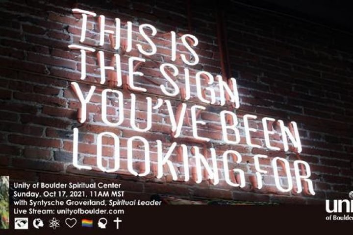 Spiritual Experience ServiceSunday, October 24, 2021 at 11AM MSTwith A Spiritual Talk Given By Syntysche Groverland Syntysche takes us deeper into a tool for manifestation, demonstrating the ‘how to’ of shifting and bringing into balance an area of your life that has been repeatedly discouraging and making you feel you have hit a dead end. Unity of Boulder is a progressive Christian church center that embraces diversity, community, acceptance and the Truth of Love that unites all of us. Watch…