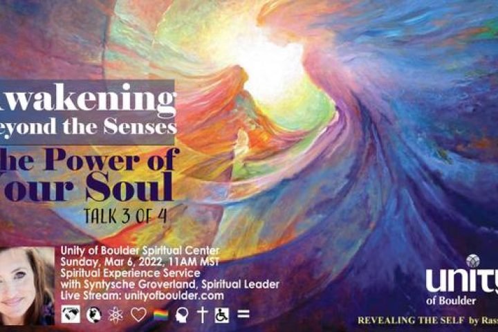 11AM MST, March 6, 2022with a Spiritual Talk Given by Syntysche GroverlandSpecial Musical Guest Performance by Acapella Duo Aletheia Rising(Dinah Snow & Sierra Samuel) THIS WEEK: ‘Awakening, Beyond the Senses ~ Talk 3 of 4: This Talk Series is about accessing, The Akashic Records, Spirit Guides, our soul families–the part of us that never dies and developing intuition and understanding how karma plays a role in our lives. Every Sunday at Unity of Boulder Spiritual Center we strive to bring…